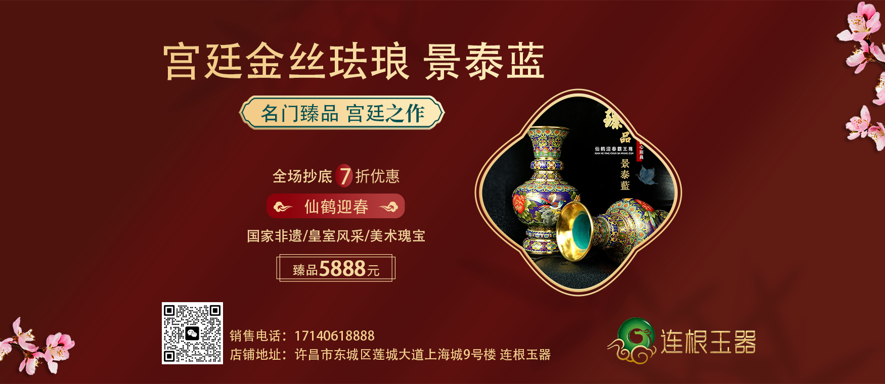 - 4景泰蓝 宝石蓝釉赏瓶锦绣前程 148